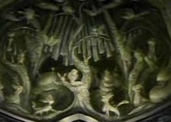 A famous sculpture of musician Edolie Mortimer situated inside the Space-Time Towers.